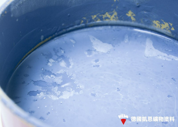凱恩礦物塗料由「液態矽酸鉀」與「礦物色粉」調配而成,不易變質、不易發霉,只要保存方法得當,半年內都能保持良好品質,隨時可再次使用也不會有任何色差。若發現沉澱、結塊或上層有膠狀分離物均屬正常現象。使用前,只需將表面結塊刮除,攪拌均勻(可視情況過濾)後即可安心使用。