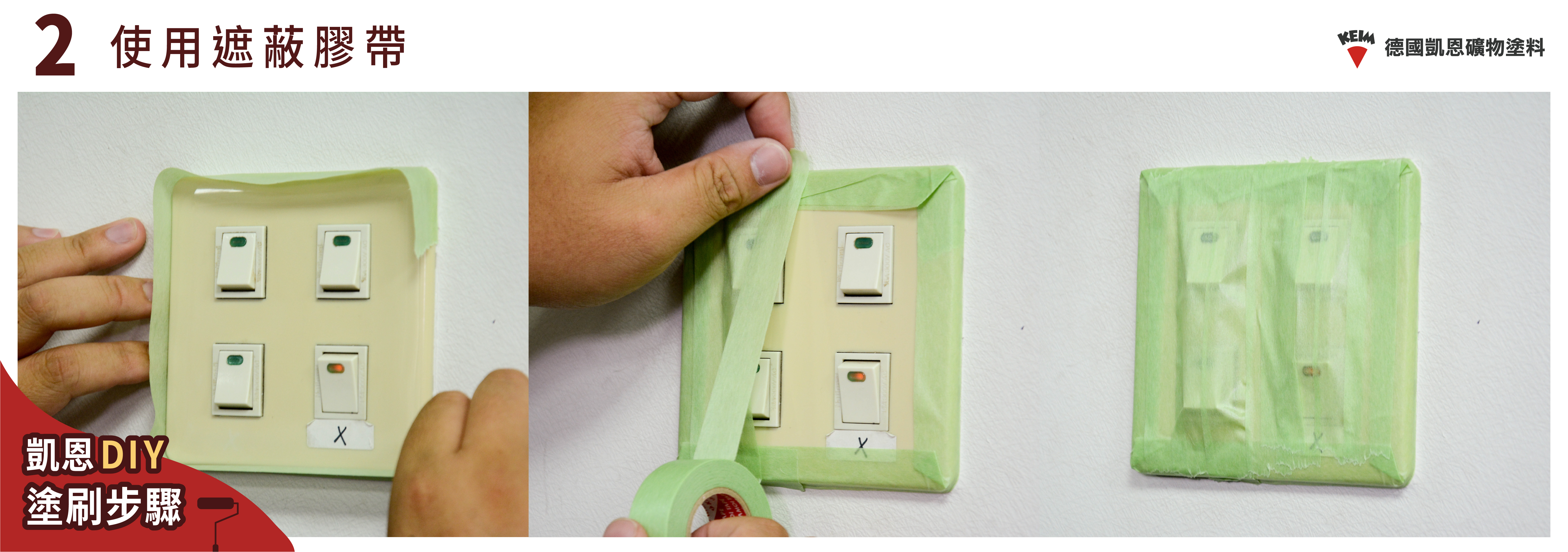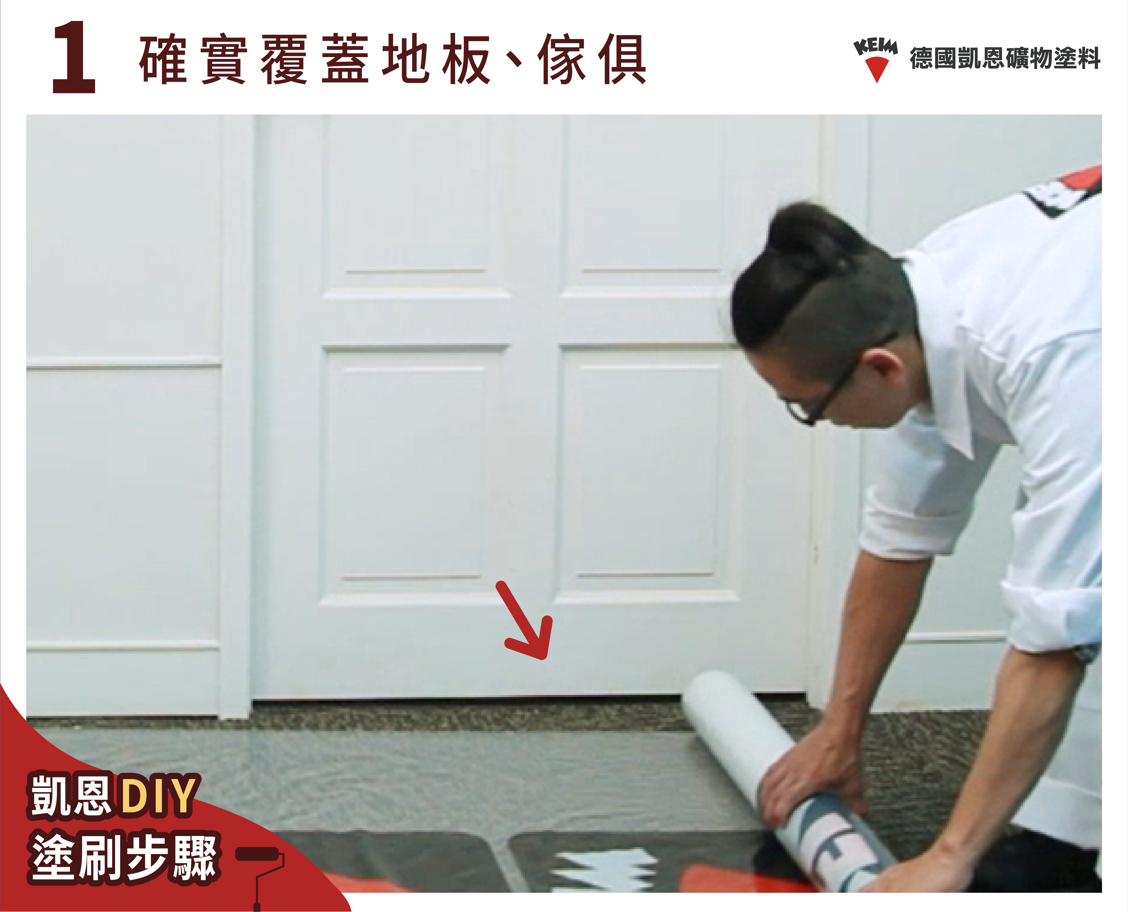1. 地板、傢俱以養生膠帶蓋以免沾染塗料。