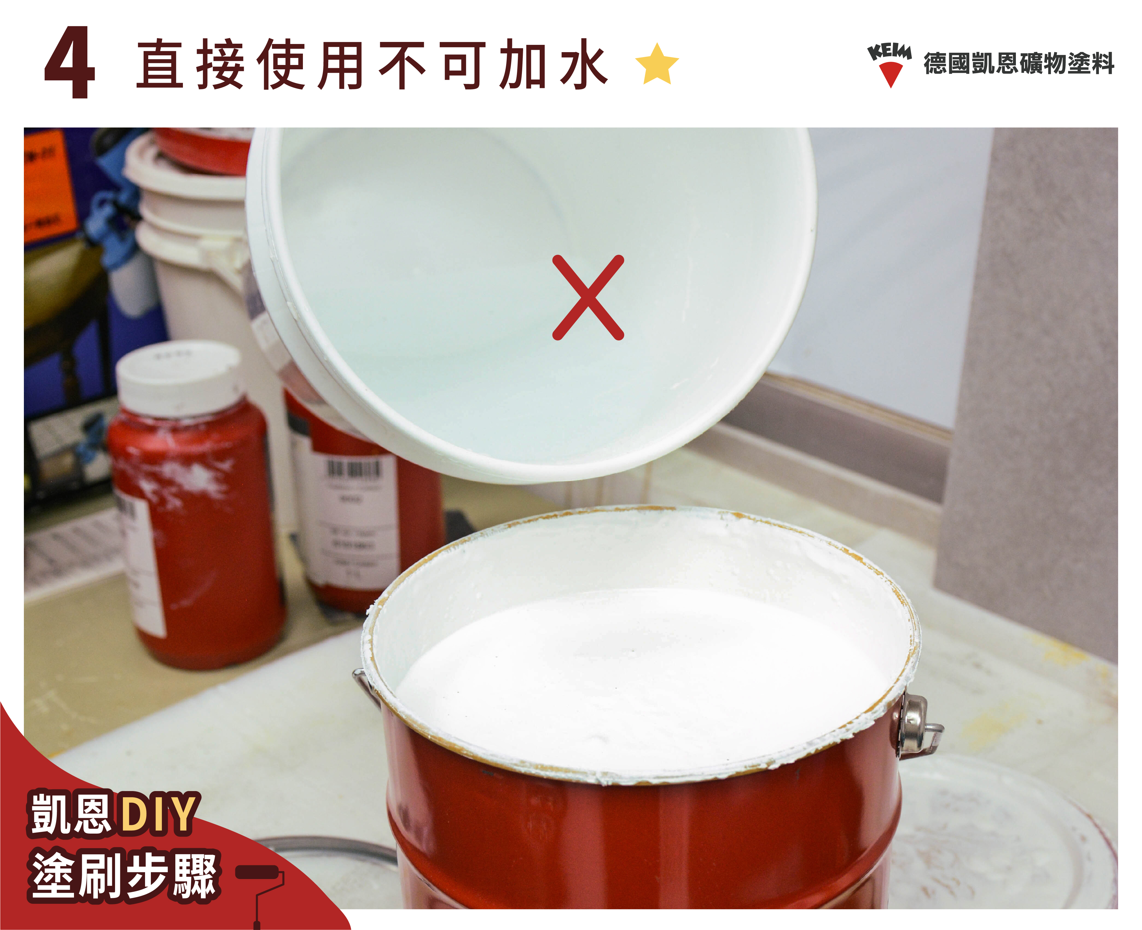 4. 德國凱恩礦物塗料與一般乳膠漆不同,不可加水稀釋!開桶後便可直接使用。