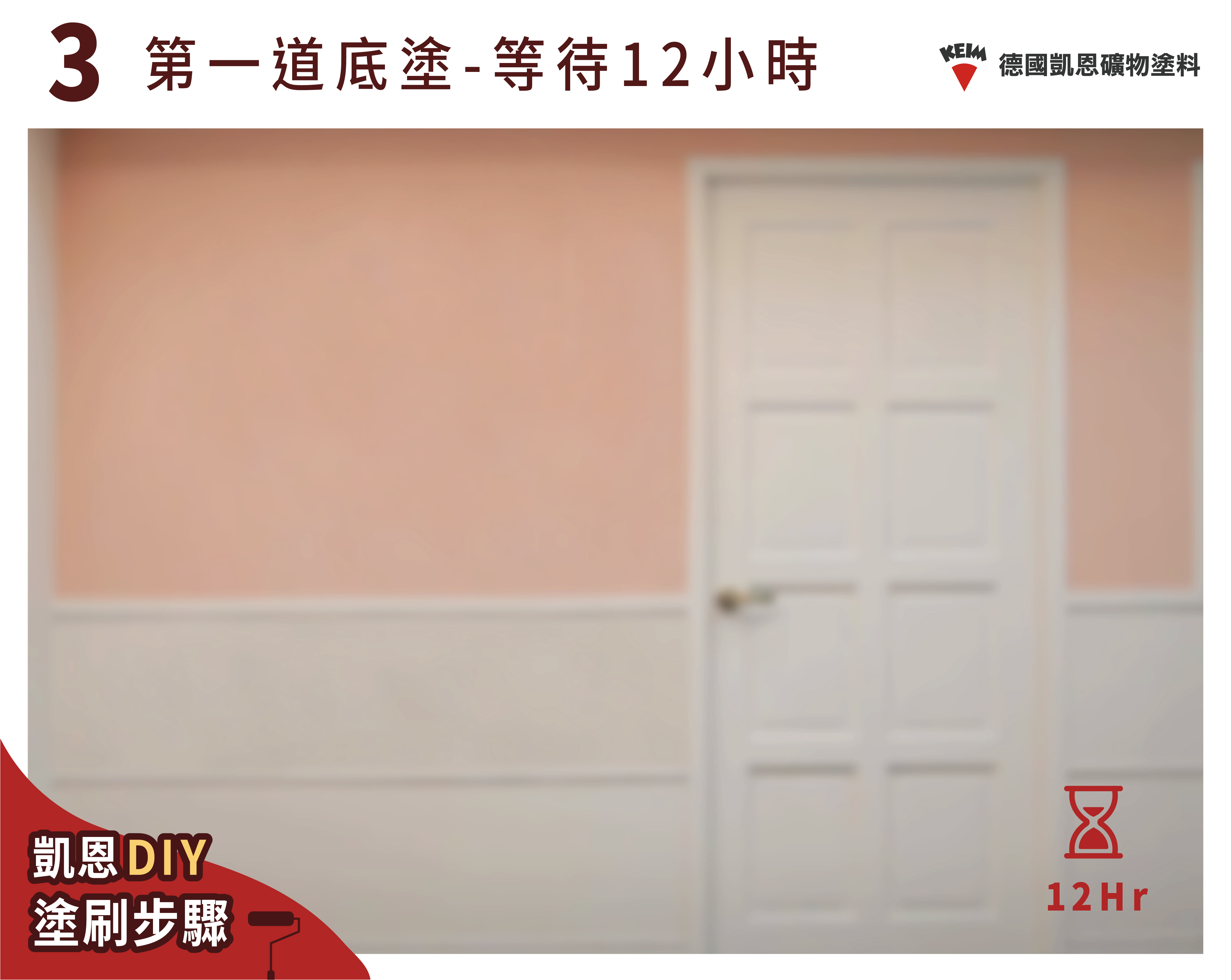 3. 第一道塗刷完成後,塗刷後靜置至少十二小時,自然風乾,讓塗料與基材完成矽化作用,勿以風扇吹乾。