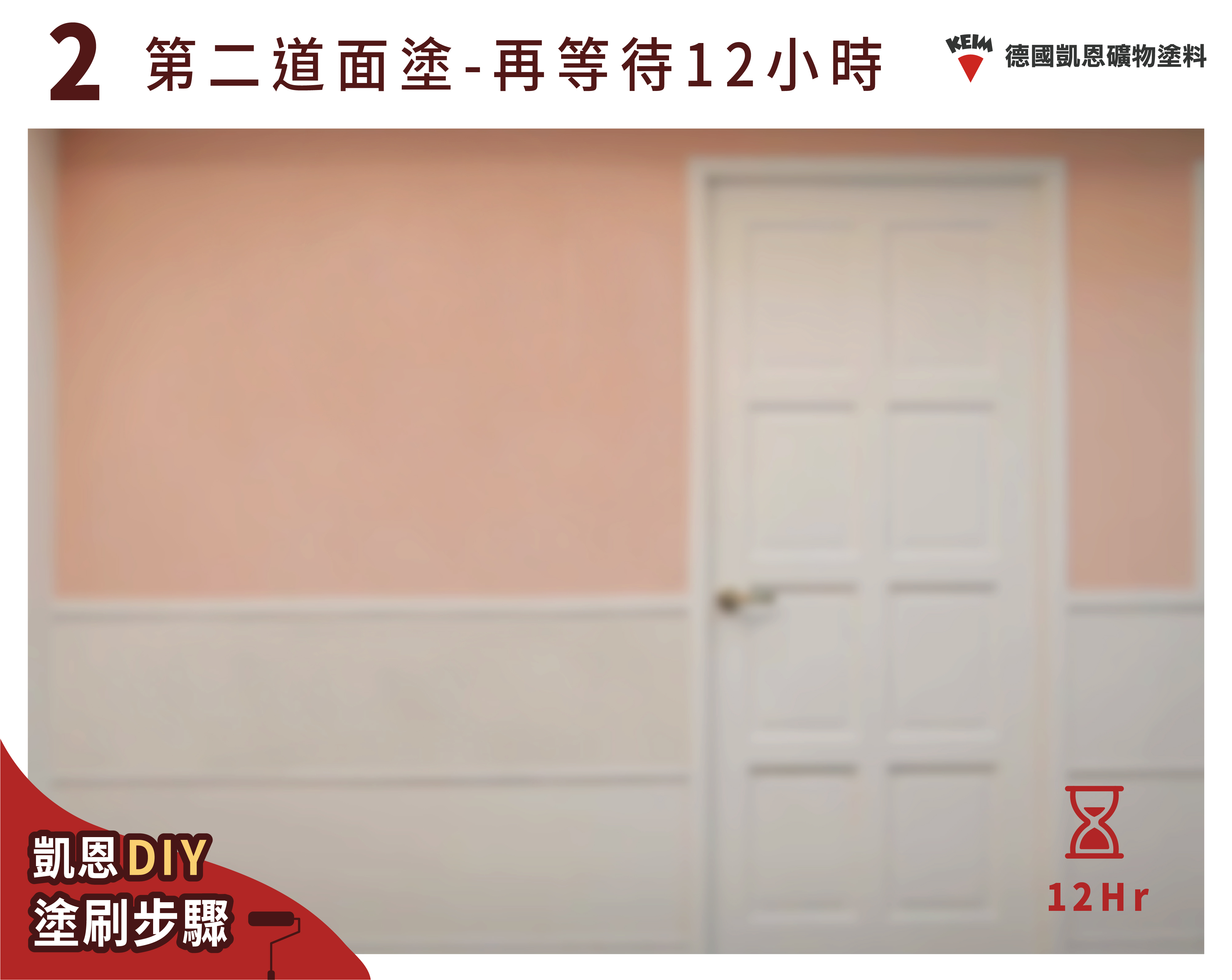 2. 第二道塗刷完成後,再靜置至少十二小時,自然風乾,讓塗料與基材完成矽化作用,勿以風扇吹乾。