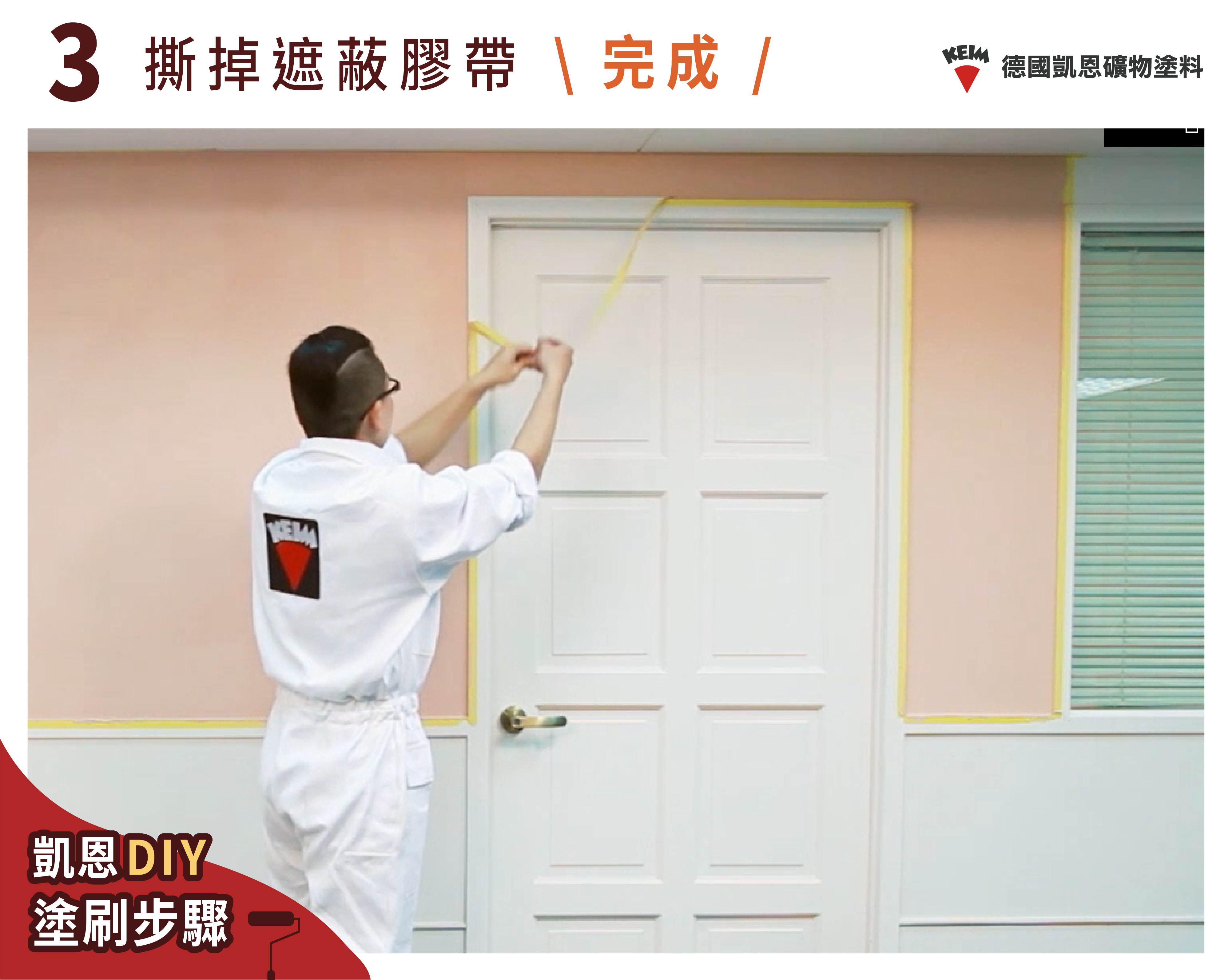 3. 十二小時過後,將黏貼在牆面的遮蔽膠帶撕除,亮麗的牆面就大功告成啦!!!